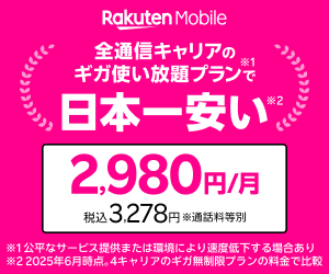 楽天モバイルはデータ使い放題と国内通話かけ放題で月3,278円です。
