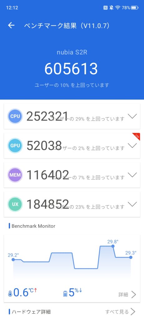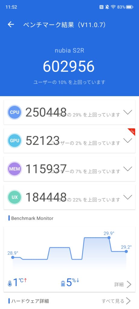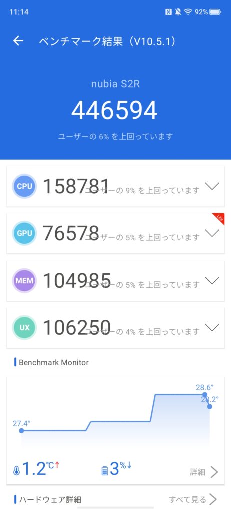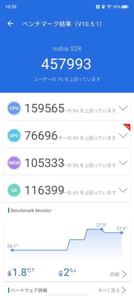 本章ではnubia S2Rのベンチマークスコアを記載します。