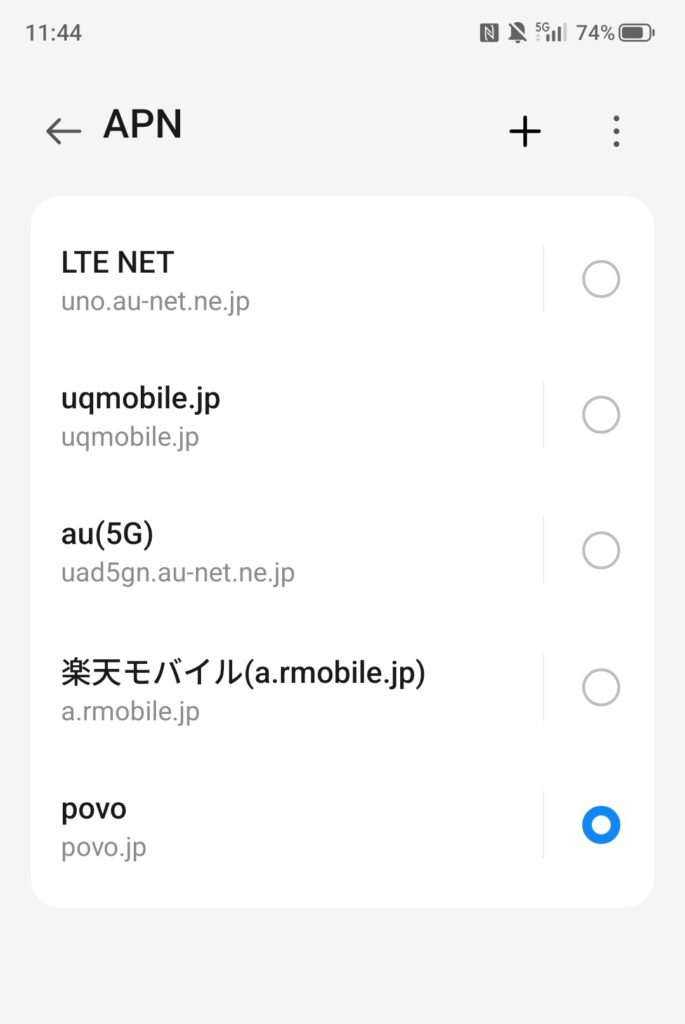 実際にau回線のSIM(povo2.0)を差してみたところ、APN情報を手動で入力すれば通話やデータ通信ができるようになりました。